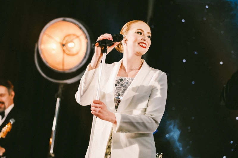The production can expand to a spectacular 14-piece lineup featuring three vocalists, brass section, string quartet, bass, guitar, keyboards, piano and drums, or be elegantly tailored to a five-piece configuration — without ever compromising on quality.